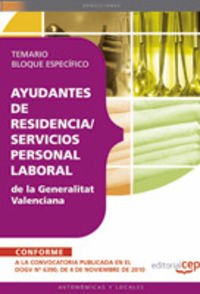 Here is the book you are looking for Ayudantes de residencia/servicios, Personal Laboral de la Generalitat Valenciana. Temario Bloque Específico (Colección 1580) PDF Online